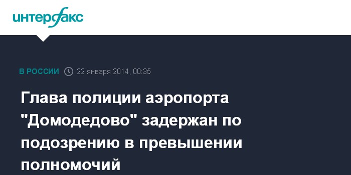 Москва. 22 января. INTERFAX.RU - Начальник полиции московского аэропорта "Домодедово" Максим Титов задержан следователями вечером во вторник по подозрению в превышении должностных полномочий.