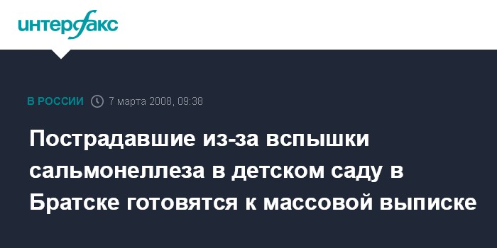 Иркутск. 7 марта. INTERFAX.RU - В больницах Братска в пятницу подготовлены к выписке более 100 человек, которые были госпитализированы в результате вспышки сальмонеллеза в детском саду N 83.