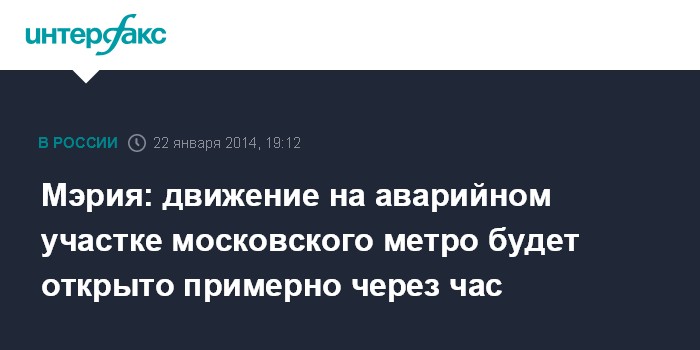 Мэрия: движение на аварийном участке московского метро будет открыто примерно через час