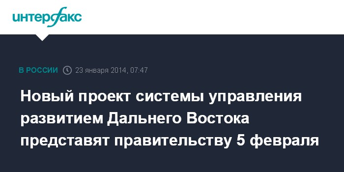 Новый проект системы управления развитием Дальнего Востока представят правительству 5 февраля