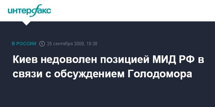 Москва. 25 сентября. INTERFAX.Ru - В министерстве иностранных дел Украины посчитали "неуважительными" высказывания российской стороны относительно международных инициатив Киева по голодомору 1932-33 годов. Соответствующее заявление пресс-служба МИД Украины распространила в четверг.