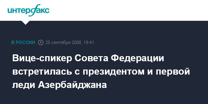 На встрече с заместителем председателя Совета Федерации Светланой Орловой глава Азербайджана подчеркнул успешное развитие двухсторонних связей. Он отметил, что за последние годы проделана большая работа по решению проблем женщин, развитию науки и образования. Президент выразил уверенность, что визит С.Орловой послужит еще большему развитию связей между Азербайджаном и Россией.