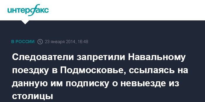 Следователи запретили Навальному поездку в Подмосковье, ссылаясь на данную им подписку о невыезде из столицы