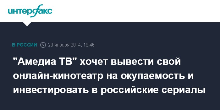 Москва. 23 января. INTERFAX.RU - "Амедиа ТВ" запустила новую версию онлайн-кинотеатра "Амедиатека", основу каталога которого составляют сериалы HBO, Showtime, Starz, Fox, Sony Pictures и других студий. Компания рассчитывает вывести сервис на окупаемость за четыре года и начать инвестировать в производство российского контента.