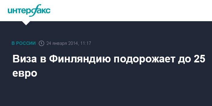 Москва. 24 января. INTERFAX.RU - Сервисный сбор за оформление визы в Финляндию с 3 февраля 2014 года увеличится с 21 евро до 25 евро.