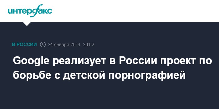 Москва. 24 января. INTERFAX.RU - Американская интернет-компания Google реализует в России проект, связанный с борьбой с детской порнографией, сообщили "Интерфаксу" в пресс-службе Google Россия.