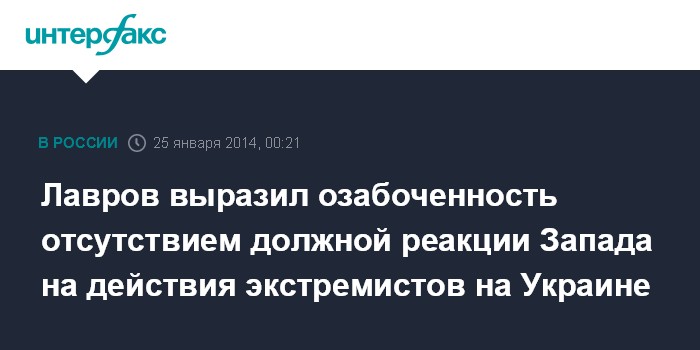Лавров выразил озабоченность отсутствием должной реакции Запада на действия экстремистов на Украине