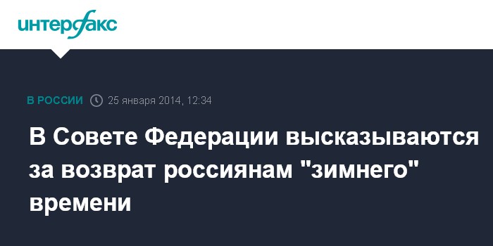 Москва. 25 января. INTERFAX.RU - В Совете Федерации поддерживают внесенный в Госдуму законопроект, возвращающий россиянам "зимнее" время и запрещающий сезонный перевод часов.
