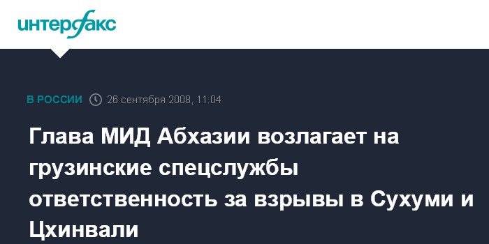 По словам Шамбы, "такие взрывы - это уже хорошо знакомая нам деятельность грузинских спецслужб". Он добавил, что в Сухуми не сомневаются, что эти взрывы были организованы извне. "У нас здесь просто нет внутренних причин для терактов", - подчеркнул абхазский министр.