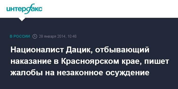 Националист Дацик, отбывающий наказание в Красноярском крае, пишет жалобы на незаконное осуждение