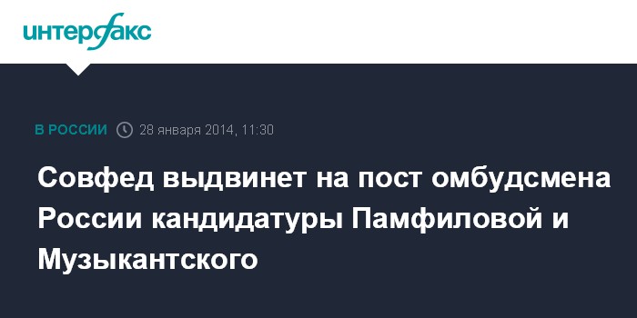 Совфед выдвинет на пост омбудсмена России кандидатуры Памфиловой и Музыкантского