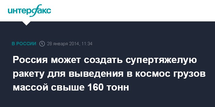 Москва. 28 января. INTERFAX.RU - Роскосмос готовит предложение по разработке сверхтяжелой космической ракеты, способной выводить на орбиту полезную нагрузку массой свыше 160 тонн, заявил во вторник глава агентства Олег Остапенко.