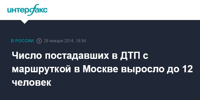 "Количество пострадавших в ДТП на территории "новой Москвы" составило 12 человек, в настоящее время их развозят по больницам. Состояние пострадавших различной степени тяжести", - сказал собеседник агентства.