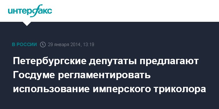 Санкт-Петербург. 29 января. INTERFAX.RU - Депутаты петербургского заксобрания выступили с инициативой принятия федерального закона, регламентирующего использование флага Российской империи.