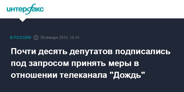 Почти десять депутатов подписались под запросом принять меры в отношении телеканала "Дождь"