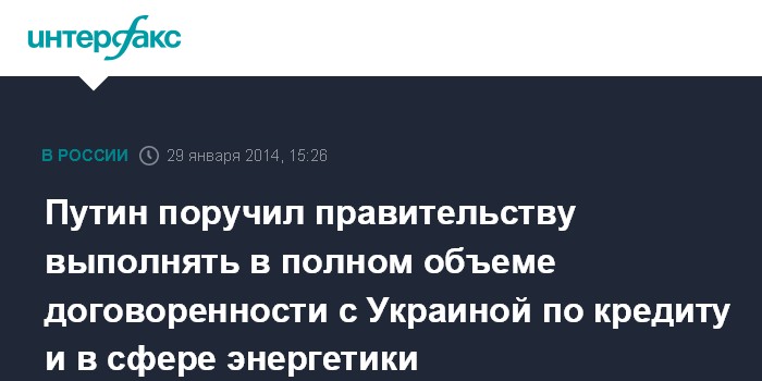"Я хотел бы обратить внимание правительства на то, что беспокоит наших украинских коллег и друзей, а именно на необходимость исполнения всех наших договоренностей в финансовой сфере, имею в виду наши договоренности по кредитам и в сфере энергетики", - сказал Путин на совещании с членами правительства РФ.