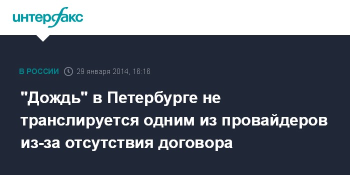 Санкт-Петербург. 29 января. INTERFAX.RU - Сеть "Дом.ру", абоненты которой в Петербурге стали жаловаться на отсутствие трансляции телеканала "Дождь", заявляет, что между компаниями не заключен договор.