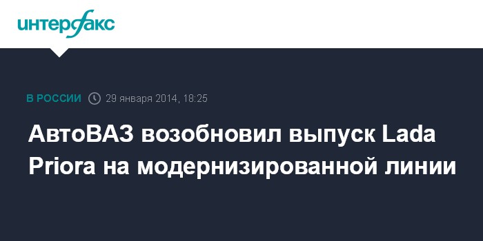 Москва. 29 января. INTERFAX.RU - ОАО "АвтоВАЗ" в среду возобновило выпуск Lada Priora на модернизированной линии главного конвейера, сообщает пресс-центр компании.