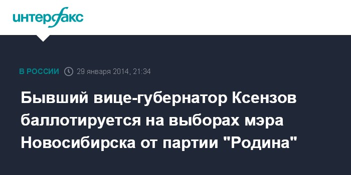 "29 января бюро президиума политсовета всероссийской политической партии "Родина" согласовало кандидатуру на должность мэра города Новосибирска. Им стал Андрей Ксензов, директор по стратегическому развитию ООО "Фалькон", - говорится в сообщении.