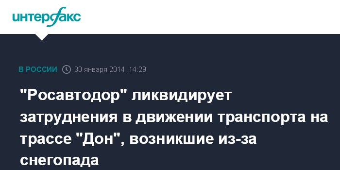 "Росавтодор" ликвидирует затруднения в движении транспорта на трассе "Дон", возникшие из-за снегопада