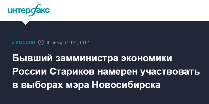 Бывший замминистра экономики России Стариков намерен участвовать в выборах мэра Новосибирска