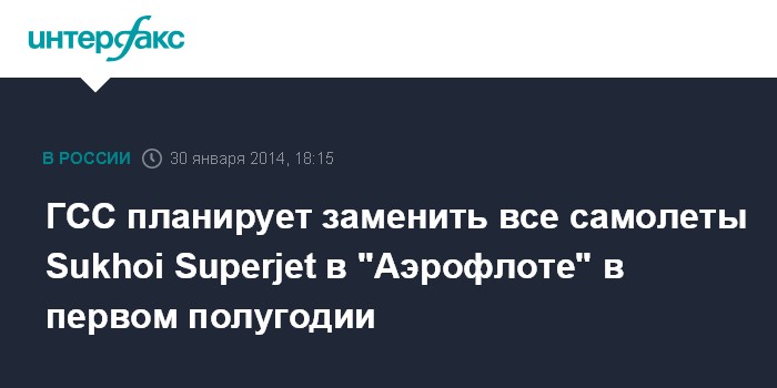 Москва. 30 января. INTERFAX.RU - Компания "Гражданские самолеты Сухого" (ГСС) заменит все самолеты Sukhoi Superjet 100 в спецификации light на ful в авиакомпании "Аэрофлот" в первой половине 2014 года, сообщает пресс-служба ГСС.