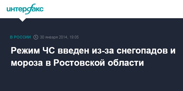 Москва. 30 января. INTERFAX.RU - В Ростовской области введен режим чрезвычайной ситуации в связи со сложными погодными условиями.