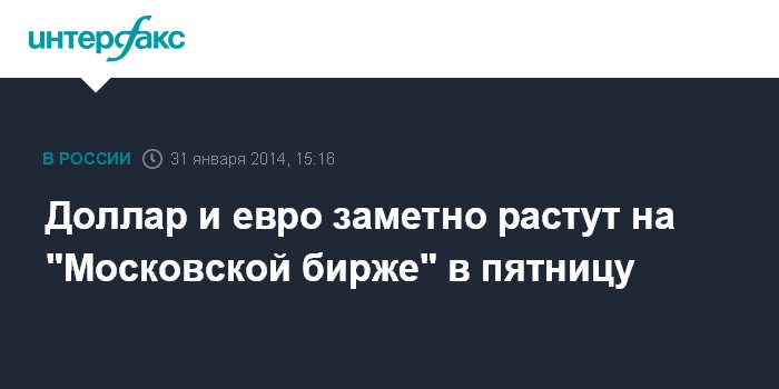 Москва. 31 января. INTERFAX.RU - Доллар и евро заметно растут на "Московской бирже" днем в пятницу, рубль снижается по отношению к бивалютной корзине на фоне сохранения неблагоприятного отношения к российской валюте. При этом стоимость корзины остается ниже верхней границы бивалютного коридора.