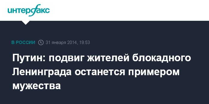 Москва. 31 января. INTERFAX.RU - Президент России Владимир Путин заявил, что память о подвиге Ленинграда в годы Великой Отечественной войны должна быть сохранена и передана потомкам.