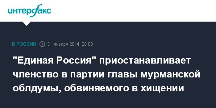 "Единая Россия" приостанавливает членство в партии главы мурманской облдумы, обвиняемого в хищении