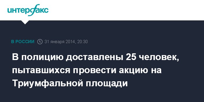 Москва. 31 января. INTERFAX.RU - После попытки нарушить общественный порядок в районе Триумфальной площади в отделы полиции доставлены 25 человек, сообщили "Интерфаксу" в пресс-службе ГУ МВД России по Москве.