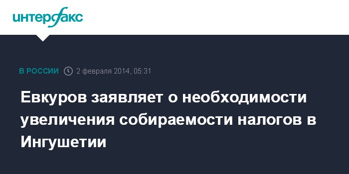 "В Ингушетии в 2013 году мобилизовано в консолидированный бюджет РФ 3 млрд 361 млн рублей, в том числе в бюджет республики 2 млрд 894 млн рублей. Хотя по итогам года республика находится в лидерах в стране по темпам роста собираемости налогов, абсолютная сумма сборов нас не может удовлетворять, так как она низка и не позволяет решать многие задачи, которые мы поставили перед собой", - заявил Ю-Б.Евкуров, обращаясь к участникам собрания.