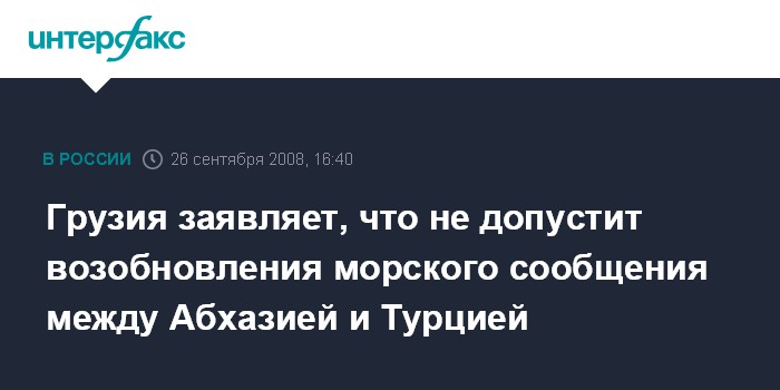 Москва. 26 сентября. INTERFAX.RU - Руководитель Единой транспортной администрации Грузии Ираклий Тактакишвили считает неприемлемыми заявления абхазских властей о возможности возобновления морского сообщения между Абхазией и Турцией. "Турецкие суда и сегодня заходят в абхазские порты, однако на официальном уровне власти Турции не подтверждают, что они намерены восстановить морское сообщение с Абхазией", - сказал Тактакишвили журналистам в пятницу.