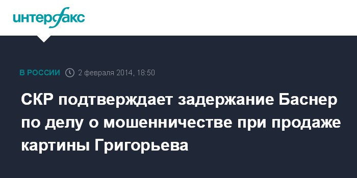 СКР подтверждает задержание Баснер по делу о мошенничестве при продаже картины Григорьева