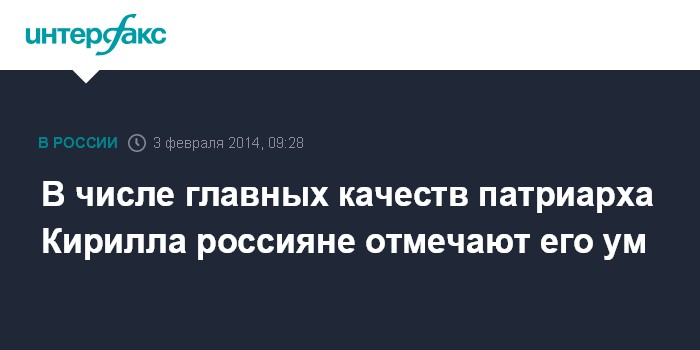 В числе главных качеств патриарха Кирилла россияне отмечают его ум