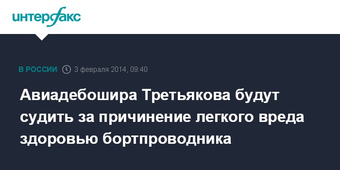 Авиадебошира Третьякова будут судить за причинение легкого вреда здоровью бортпроводника