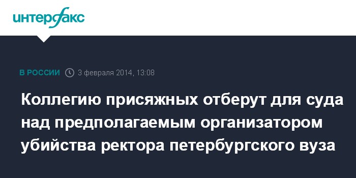 Коллегию присяжных отберут для суда над предполагаемым организатором убийства ректора петербургского вуза