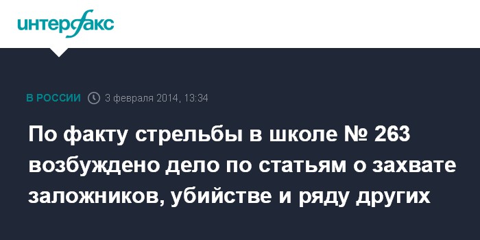 По факту стрельбы в школе № 263 возбуждено дело по статьям о захвате заложников, убийстве и ряду других
