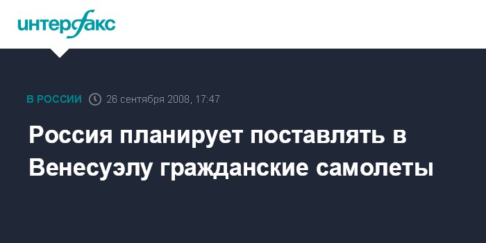 Россия планирует поставлять в Венесуэлу гражданские самолеты