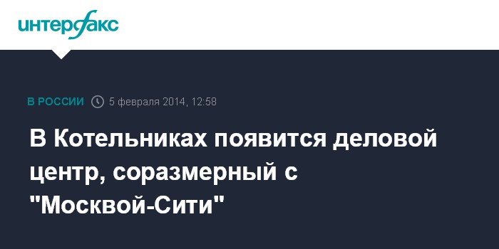 "Котельники-сити" - это большой, очень большой проект. Думаю, его размеры будут превосходящими к масштабам "Москвы-Сити". Там будет высокоплотная застройка, это будет технологичный центр с огромным количеством рабочих мест и, наверное, с каким-то жильем", - сказал Елянюшкин на пресс-конференции в среду.