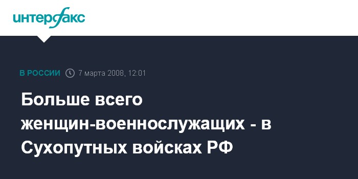 Москва. 7 марта. INTERFAX.RU - Наибольшее количество женщин-военнослужащих - свыше 27 тыс. - проходит службу в Сухопутных войсках России.