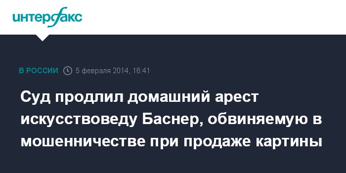 Москва. 5 февраля. INTERFAX.RU - Октябрьский районный суд Санкт-Петербурга по ходатайству следователя оставил под домашним арестом на два месяца искусствоведа Елену Баснер, обвиняемую в мошенничестве при продаже картины художника Бориса Григорьева "Парижское кафе".