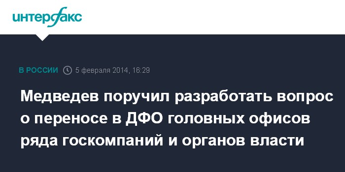 Медведев поручил разработать вопрос о переносе в ДФО головных офисов ряда госкомпаний и органов власти