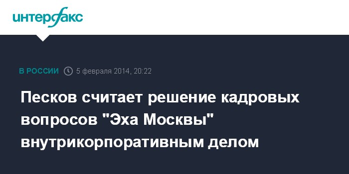Песков считает решение кадровых вопросов "Эха Москвы" внутрикорпоративным делом