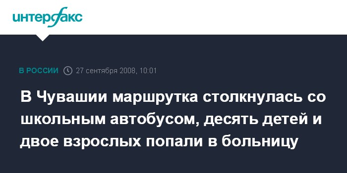 Чебоксары. 27 сентября. ИНТЕРФАКС-ПОВОЛЖЬЕ - ДТП с участием маршрутки и школьного автобуса произошло недалеко от села Ишаки в Чувашии.
