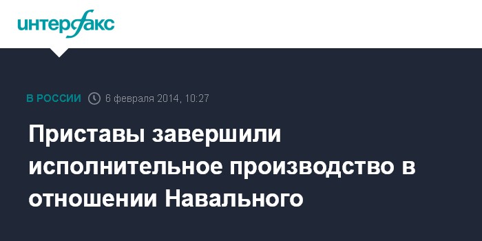 Москва. 6 февраля. INTERFAX.RU - Столичные приставы завершили исполнительные действия по взысканию с оппозиционера Алексея Навального уголовного штрафа в размере полумиллиона рублей, назначенного судом по делу "Кировлеса", сообщили в пресс-службе Федеральной службы судебных приставов.