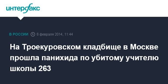 Москва. 6 февраля. INTERFAX.RU - Панихида по учителю географии Андрею Кириллову, застреленному учеником в московской школе номер 263, прошла в четверг на Троекуровском кладбище столицы.