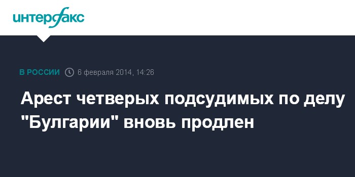 Москва. 6 февраля. INTERFAX.RU - Московский районный суд Казани в четверг продлил еще на 3 месяца - до 10 мая - срок содержания под стражей четверым подсудимым по делу о крушении теплохода "Булгария".