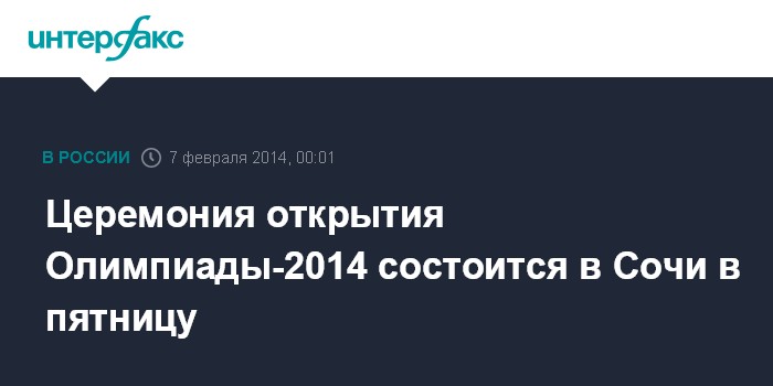 Москва. 7 февраля. INTERFAX.RU - Церемония открытия XXII Зимних Олимпийских игр состоится в пятницу на стадионе "Фишт" в Сочи.