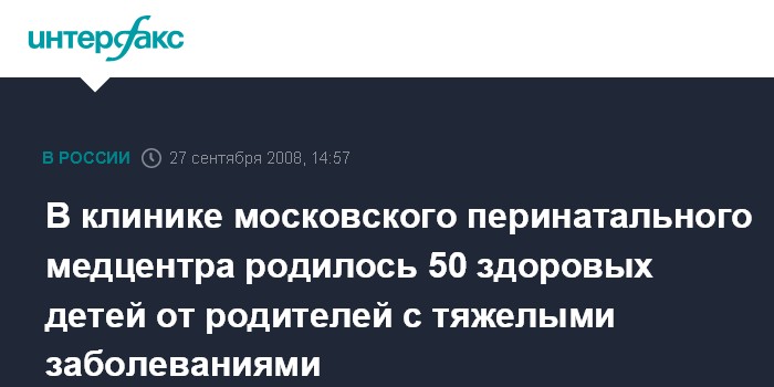 Москва. 27 сентября. INTERFAX.RU - Пятьдесят здоровых детей родилось в Москве за последние три года от родителей с тяжелыми наследственными заболеваниями с помощью предимплантационной генетической диагностики (PGD) в рамках программы по искусственному оплодотворению, сообщил журналистам научный руководитель программы PGD клиники ЭКО Перинатального медицинского центра Павел Базанов.